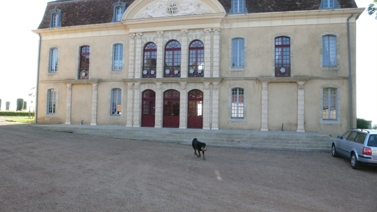 Gaius, the dog, at Chateau Montus.
